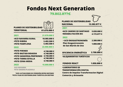 Un total de 150 representantes del sector turístico navarro han participado en una jornada profesional, organizada por la Dirección General de Turismo, Comercio y Consumo, sobre las oportunidades que brindan los fondos europeos Next Generation para impulsar un turismo sostenible. La jornada, que se ha ofrecido en streaming, está disponible en el canal de YouTube de Turismo.