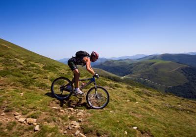 Bi gurpiletan ibili nahi baduzu, deskargatu Nafarroako zikloturismoaz prestatu dugun liburuxka: hortxe dituzu bizikletan zein mendi-bizikletan egin daitezkeen ibilbideak.